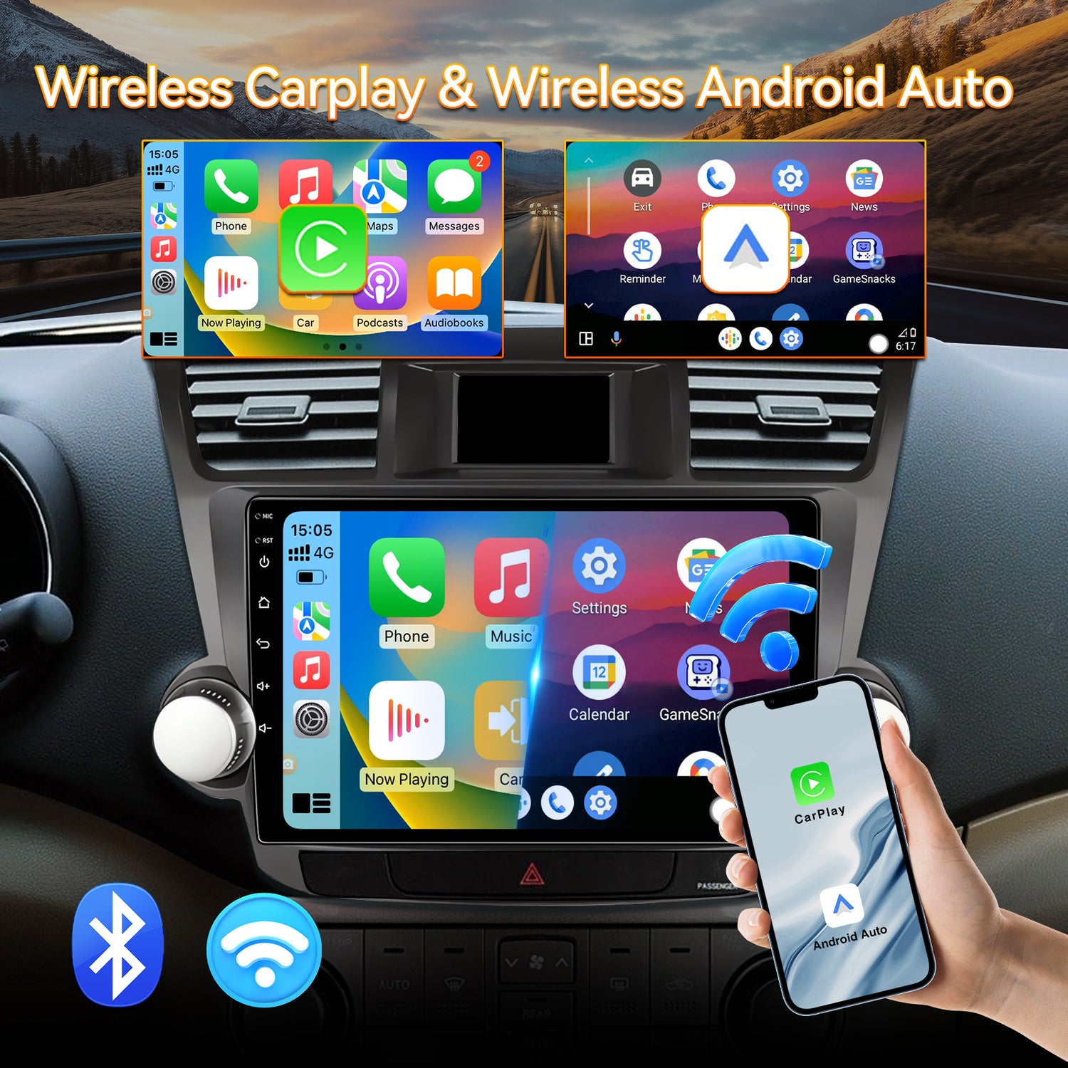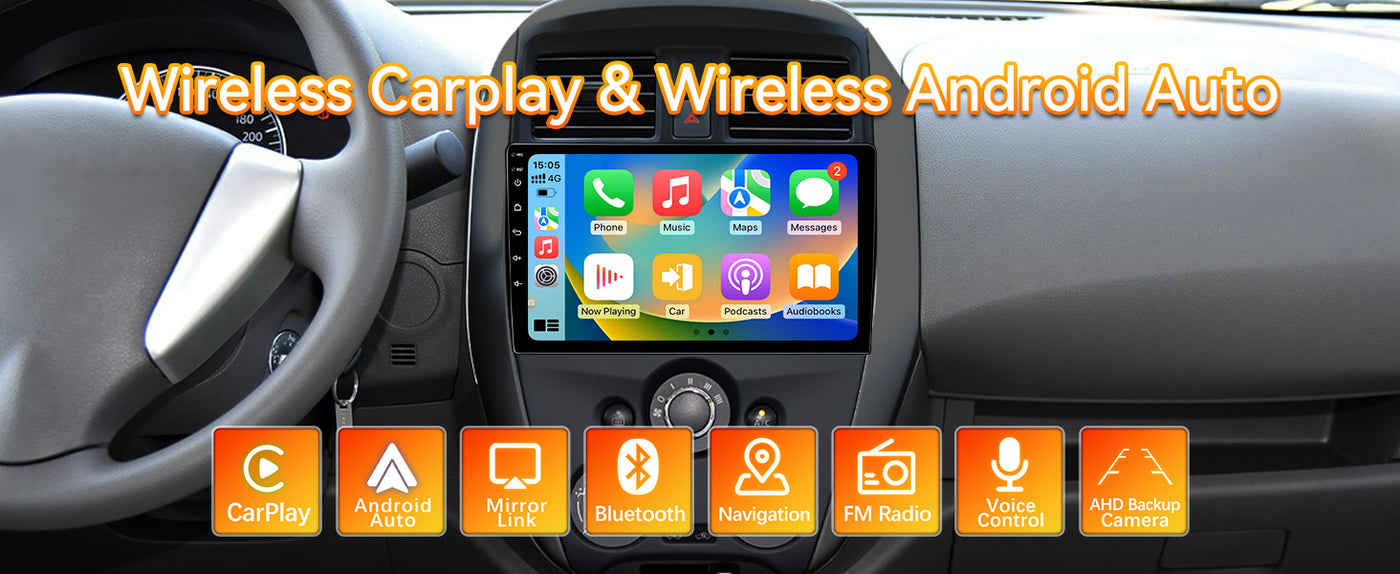- 【Built-in Wireless CarPlay & Android Auto】All you need to do is connect your smartphone to the car radio via Bluetooth. With a smart voice assistant or touchscreen display, you can get directions, make calls, send and receive messages, listen to music, and more.