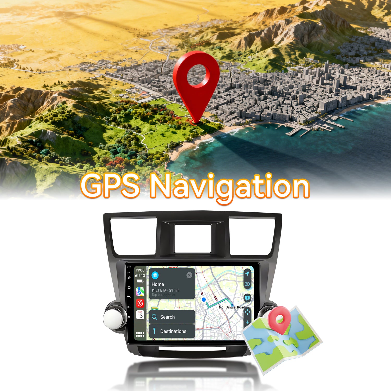 - 【GPS Navigation】When you are connected to the Internet, you can use an online maps of North America. Once the GPS antenna in our package is connected, you can plan your route according to the map directions.