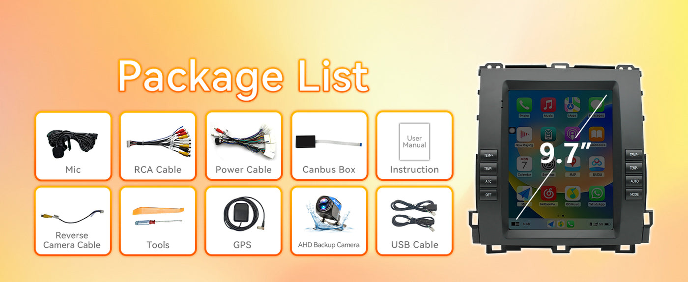 - 【Applicable Car Models】This android 15 car stereo radio system is compatible with Lexus GX470 2002-2009 Toyota Prado. This 9.7 Inch car stereo comes with all necessary cables for easy installation, requiring no cable cutting. Upgrade your vehicle with our latest Android 15 system! (Please carefully confirm your vehicle model/year/size/style OEM unit and the shape of the center console before purchasing to ensure compatibility.)