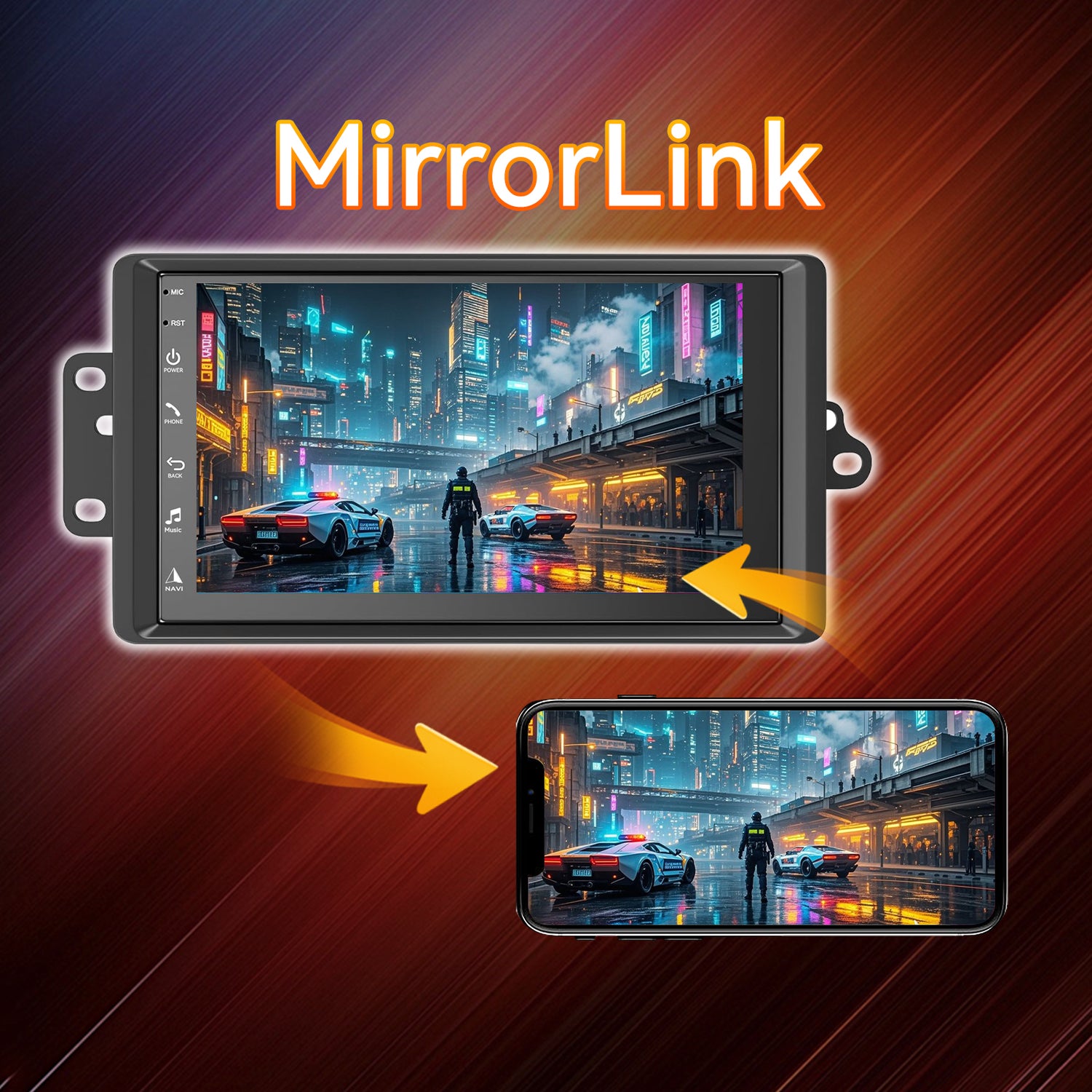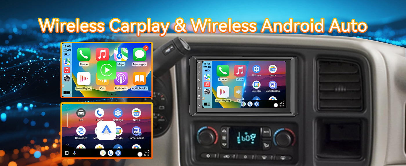 - 【Car Stereo with Wireless CarPlay, Android Auto, and MirrorLink】This Car Stereo supports wireless CarPlay and Android Auto, upgrading your car radio experience with MirrorLink. Connect via Bluetooth to project mobile content onto a 7-inch large screen, enjoying high-definition video, GPS navigation, hands-free calls, and music playback, or manage other applications through a smart voice assistant, enhancing your driving experience.