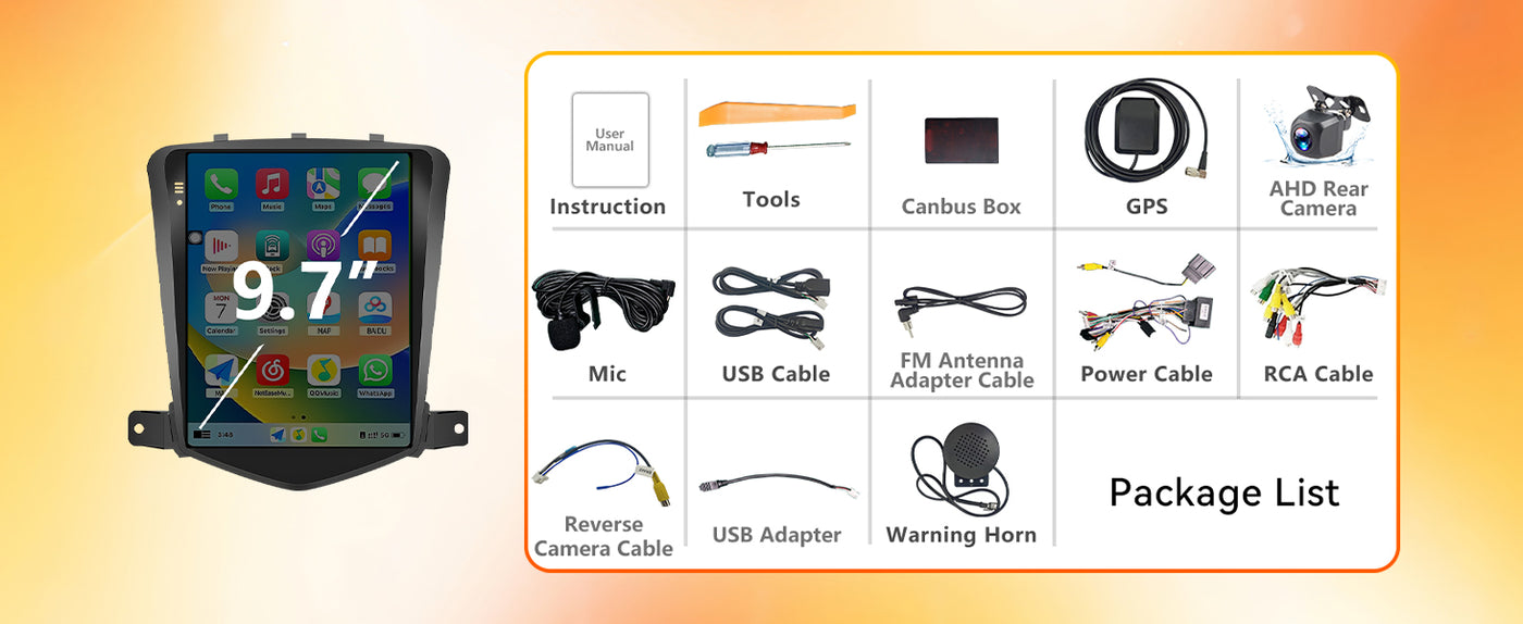 - 【High Resolution Display & Rear Camera Support】The car radio is equipped with a 9.7-inch resolution touchscreen, and the 1080*720 resolution touch screen can bring you an excellent visual experience; Includes 1080P AHD reversing camera,Support AHD reversing camera image input; Automatically switches the reversing image when reversing to provide the best parking assistance