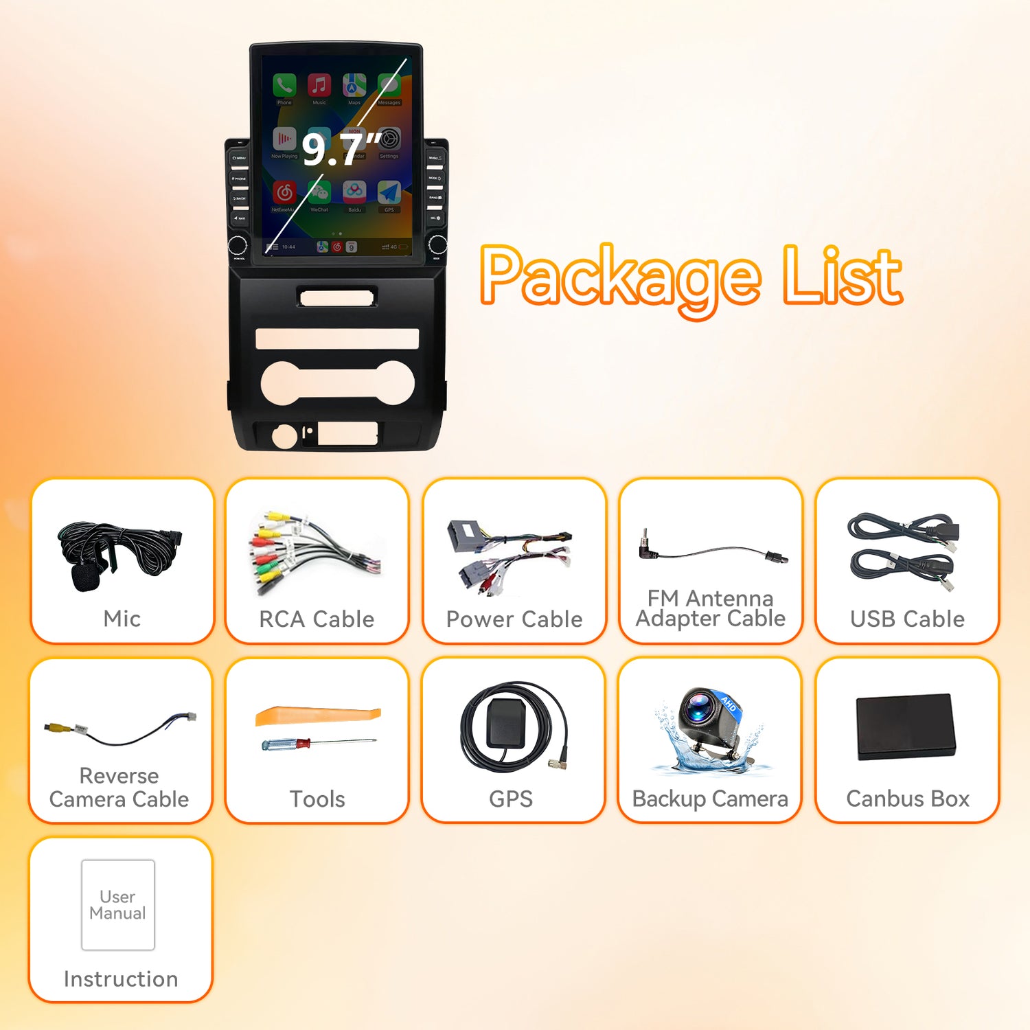 - 【Car Stereo with Wireless CarPlay, Android Auto, and MirrorLink】This Car Stereo supports wireless CarPlay and Android Auto, upgrading your car radio experience with MirrorLink. Connect via Bluetooth to project mobile content onto a 9.7-inch large screen, enjoying high-definition video, GPS navigation, hands-free calls, and music playback, or manage other applications through a smart voice assistant, enhancing your driving experience.